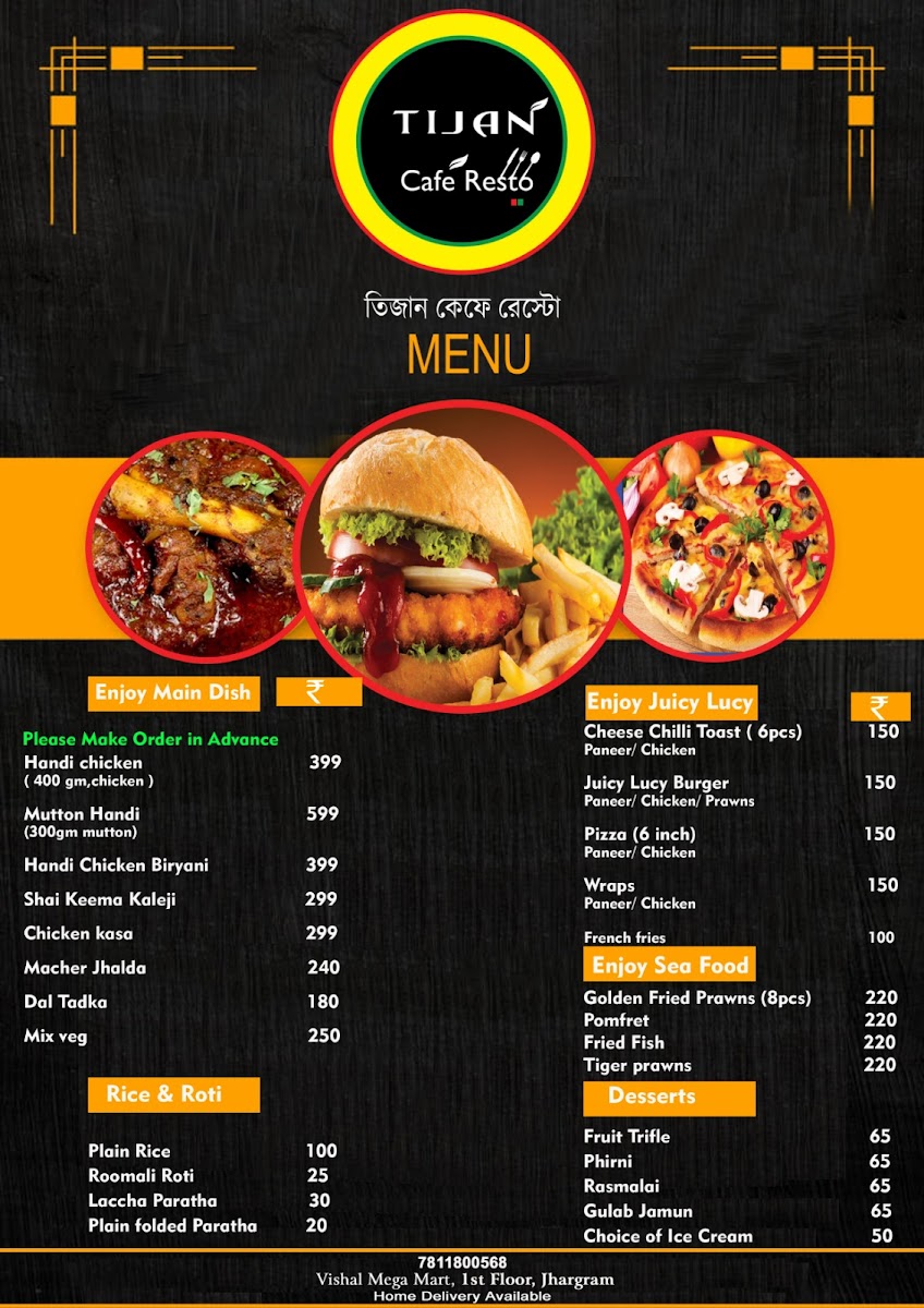 Welcome to TIJAN Cafe Resto, a culinary gem nestled in Raghunathpur, Jhargram. This vibrant café offers a menu that showcases the rich flavors of Indian cuisine, with a strong emphasis on traditional dishes.